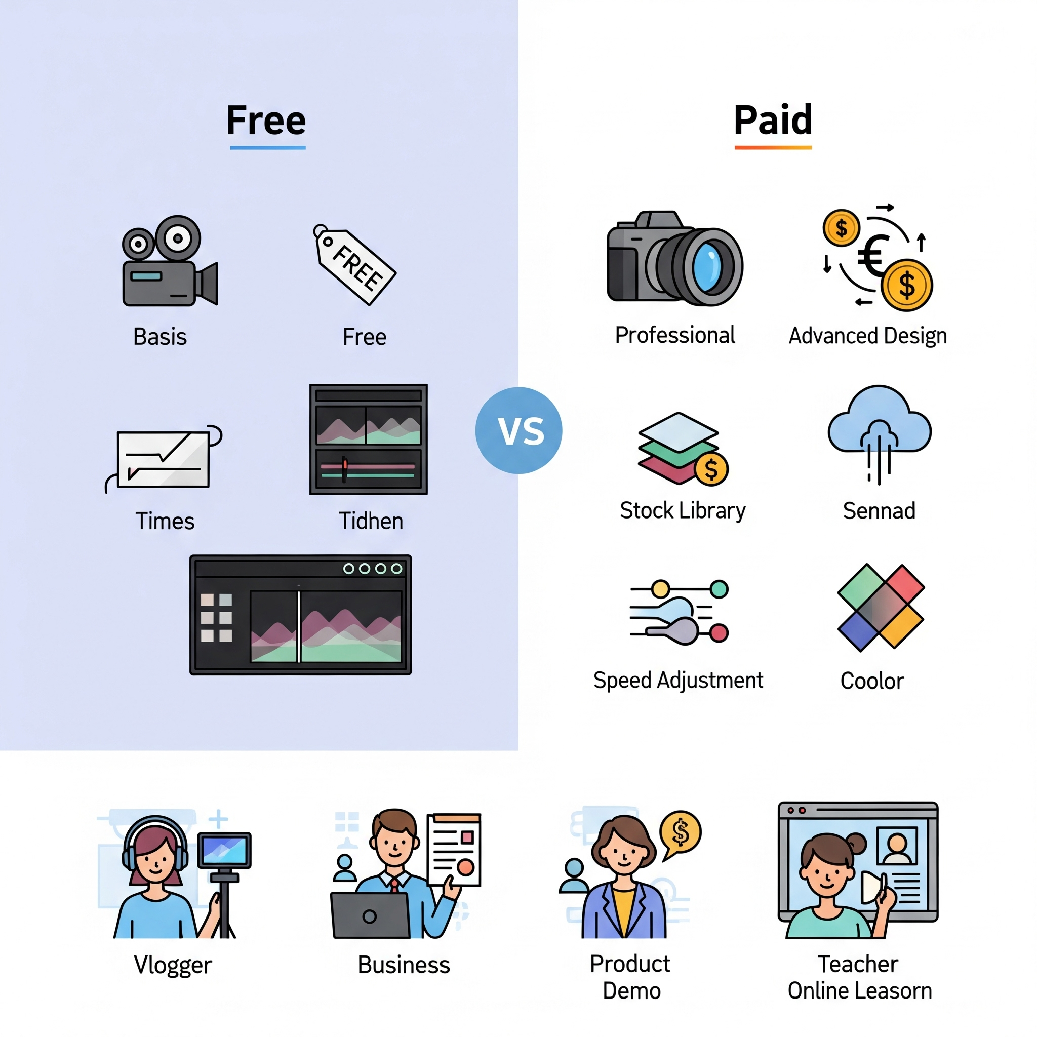 반면 유료 도구는 더 고도화된 AI 기능(AI 영상 생성, 특정 개체 제거 등)과
